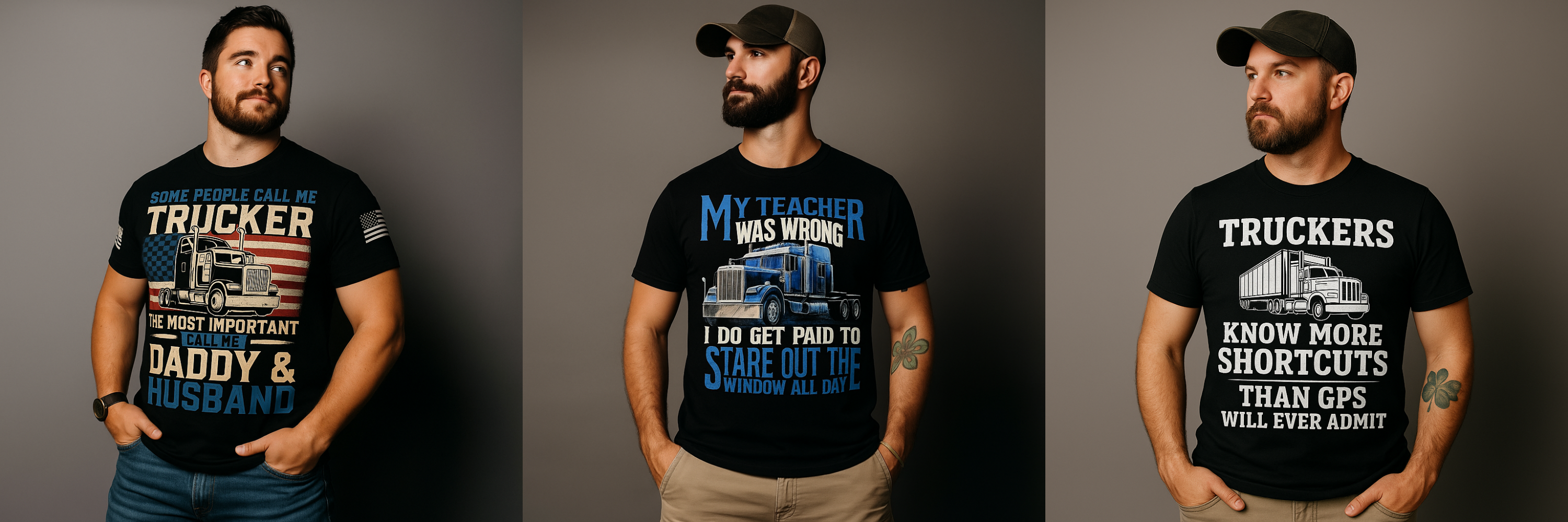Each design is inspired by the real grit and glory of life on the open road. From the roar of the engine to the endless highways under the stars — every graphic captures the strength, freedom, and pride that define a true trucker.